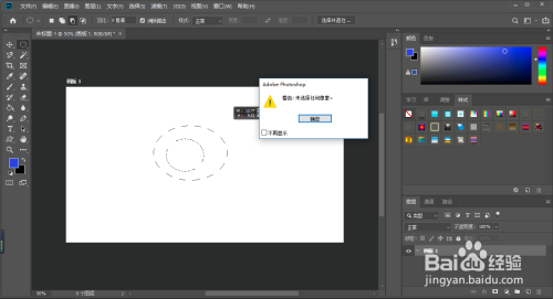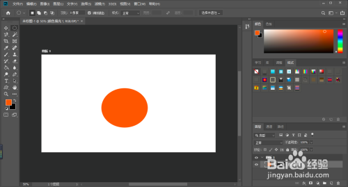 新建选区。演示东西为椭圆选框东西,如下图,点击新建拔取按钮,在画板上新建一个椭圆选区,快捷键Alt+Delete填充前景色。