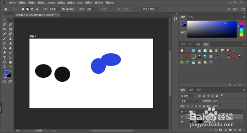 添加到选区。点击添加到选区,再在画板上画选区,如下图二,左边黑色的是两个不订交的选区,右边蓝色是订交选区,它们都进行了新旧选区的归并。