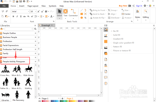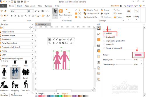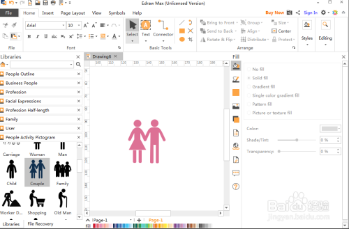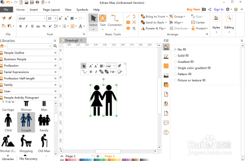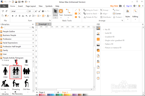 2、进入人物符号库中,点击人物勾当图,找到并选中夫妻图;