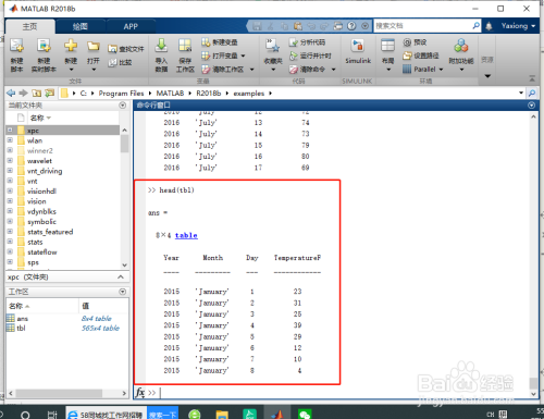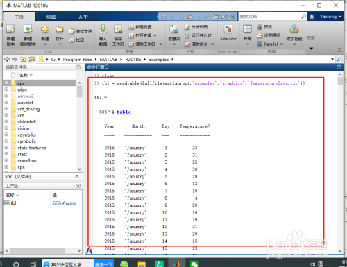 %加载示例文件 TemperatureData.csv,此文件包含 2015 年 1 月至 2016 年 7 月间的日均温度。将此文件读取到一个表中,并显示前几行。