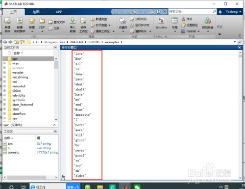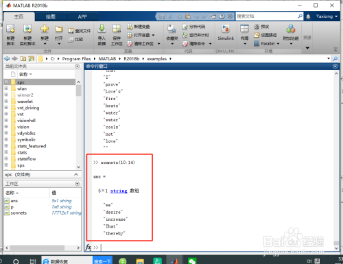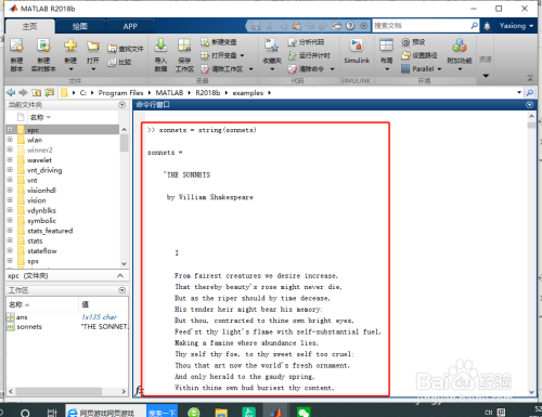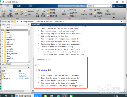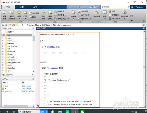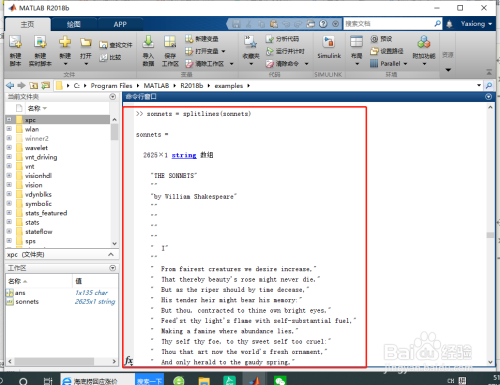 %将 sonnets 拆分为其元素包含单个单词的字符串数组。要完当作此操作,需要将所有字符串元素归并当作一个1×1 字符串,然后在空白字符处进行拆分。