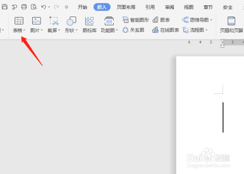 打开文档,找到插入菜单下的表格,如图。