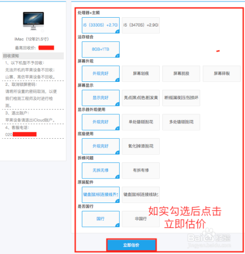 3、按照本身的iMac 型号及外不雅利用环境如实勾选,避免收受接管时有价钱误差
