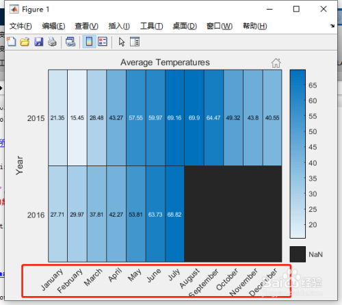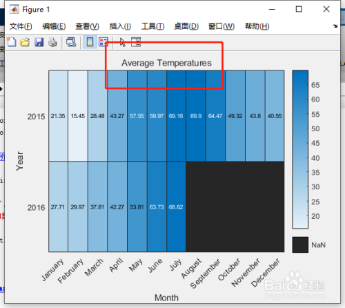 %建立一个热图,此中 x 轴暗示月份,y 轴暗示年份。经由过程设置 ColorVariable 属性,利用温度数据为热图单位格着色。将 HeatmapChart 对象赋给变量 h。在建立图形后,利用 h 对其进行点窜。