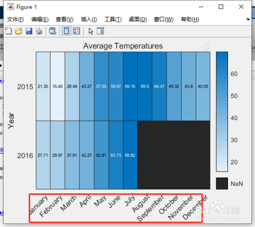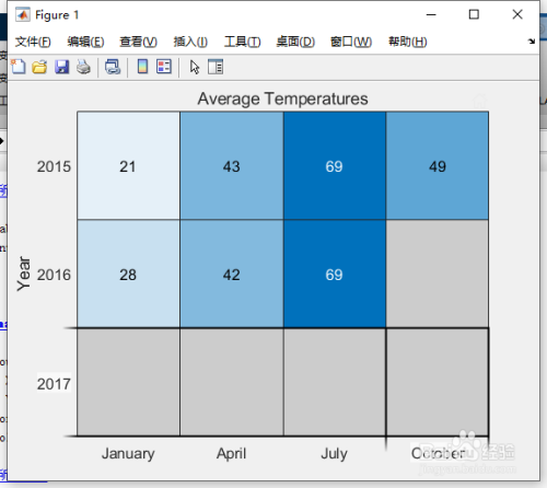 默认环境下,MATLAB 会将颜色数据作为每月的平均温度进行计较。可是,可经由过程设置 ColorMethod 属性来更改计较方式。