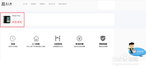 在正二品官网首页选择iPhone,下面会呈现每一条目型号的iPhone机型,找到iPhone 7 plus这条目型号,或者首页直接搜刮iPhone 7 plus点击进去。