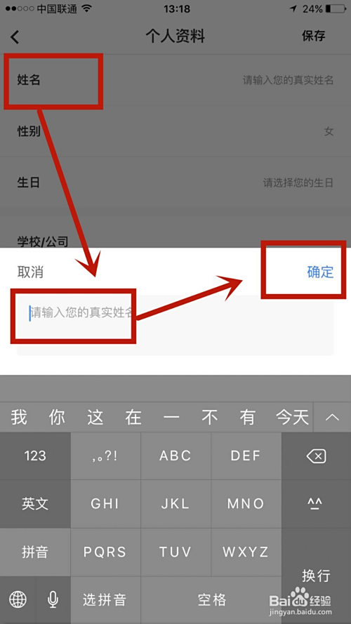 点击姓名,输入内容后点击确定,即可当作功操作。