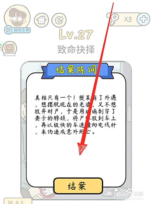 最后成果如下图所示,提交三条线索解锁了案当作词即可过关。