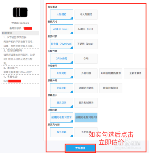 3、按照本身的iwatch 型号及外不雅利用环境如实勾选,避免收受接管时有价钱误差