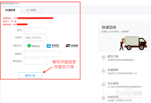 选择上门收受接管:填写具体上门地址,期待工作人员联系并上门收受接管