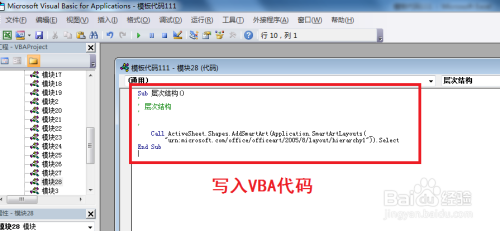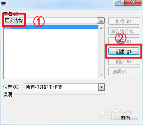 4.写明VBA代码名称,然后点击“建立”按钮。