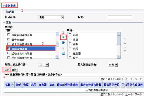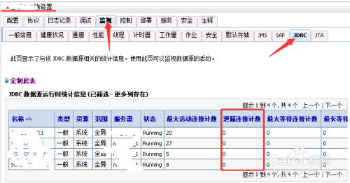 如下图所示,在“JDBC”这个菜单下,会有一个“泄露毗连计数”,这个就是“Leaked Connection Count”。