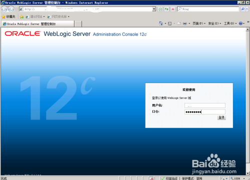 打开IE浏览器,输入每个应用系统中心件WebLogic的URL,然后键入账号和暗码: