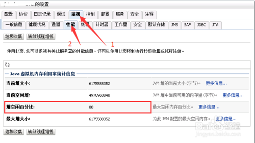 红框中的“堆余暇百分比”就是我们巡检机能指标之一“heap区余暇环境”;