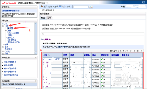 下图的红框就是我们要巡检的“server状况”了。一般,正常的状况为RUNNING;当然不正常的状况有很多多少种啦,常见的有“Failed”,“Overload”,“UNKNOW”,“ADMIN”等等,这些都不是正常运行的状况,若是呈现除了RUNNING以外的状况,都需要对这个节点进行各类日记阐发。这些阐发,将由中心件办理员进行,对该节点进行排查!