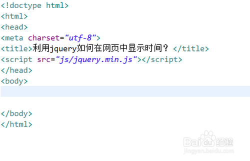 新建一个html文件,定名为test.html,用于讲解操纵jquery若何在网页中显示时候。