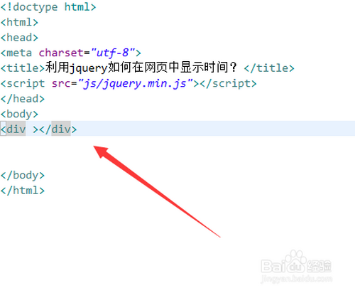 在test.html文件内,利用div标签建立一个模块,用于时候的显示。