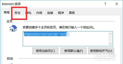 在Internet选项里面点击【平安】