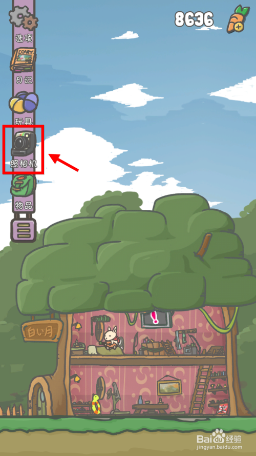 拍照机买下来后,在背包中和菜单栏城市呈现1个拍照机图标。