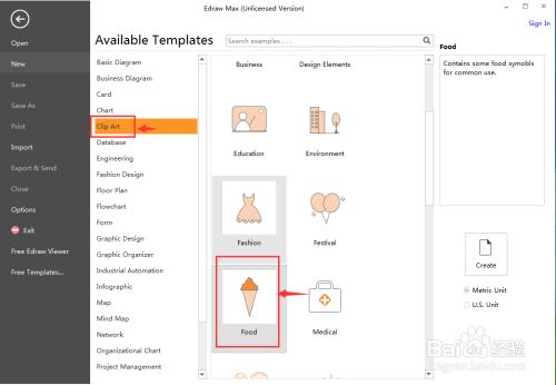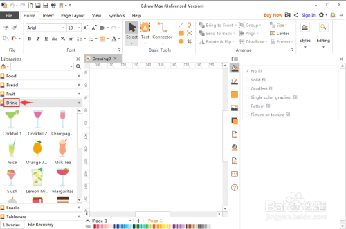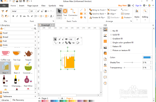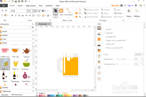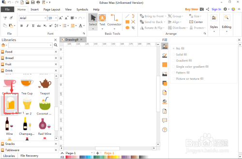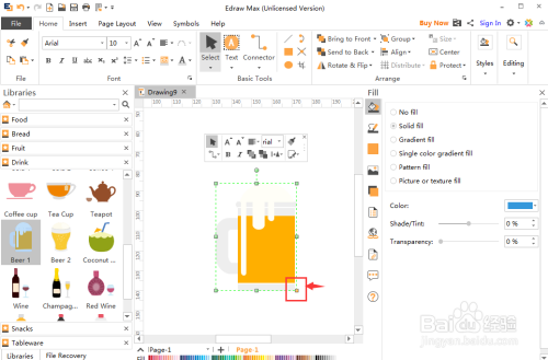 2、进入食物符号库中,点击饮料,找到并选中啤酒;