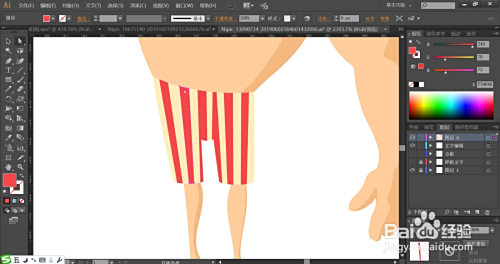 鼎力士的短裤用米黄色填充,再用大红色填充短裤的线条路径。