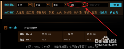 在查询区,选择想要查询的口岸城市,这里以厦门为例。