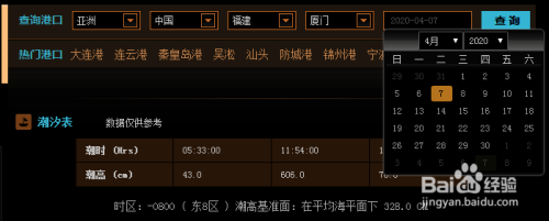 进入中国海事办事官方网站,点击“潮汐”,进入潮汐查询页面。