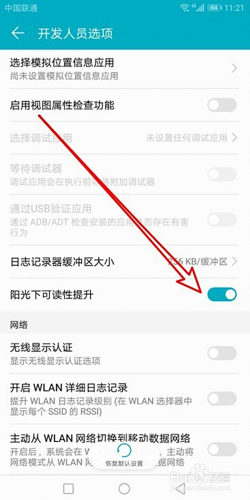 然后在打开页面找到阳光下可读性晋升的设置项。