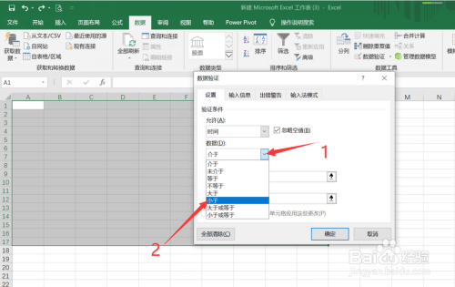 第三步:点击【数据】下方右侧的下拉箭头,选择【小于】