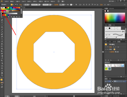 最后,点击【色板】,将图案设置为想要的颜色即可。这样我们的镂空八边形圆形图案就建造完当作了。
