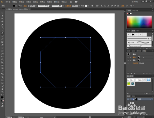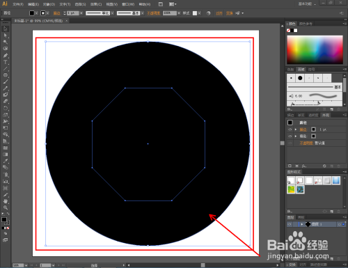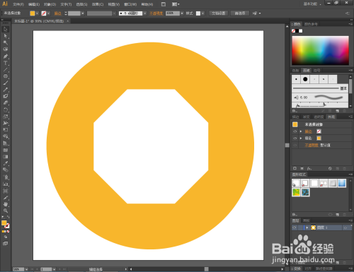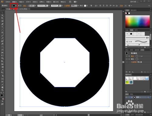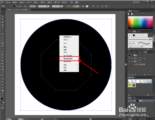 点击【选择东西】,同时选中圆形图案和八边形图案。点击鼠标右键-【成立复合路径】,将两图案路径进行连系;