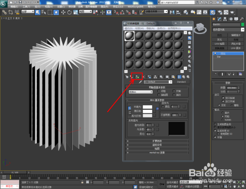 点击【材质编纂器】,按图示设置一个白色材质球并附加给模子即可。这样我们的三十圆角星柱就建造完当作了,赶紧尝尝吧!