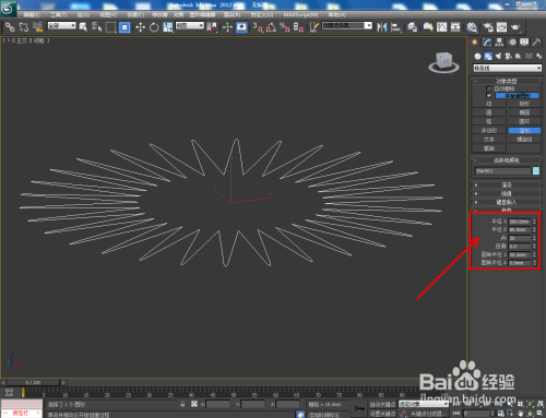 点击【建立】-【图形】-【星形】,按图示对三十圆角角星参数进行设置,绘制出一个三十圆角角星图案;