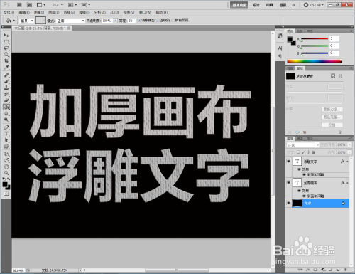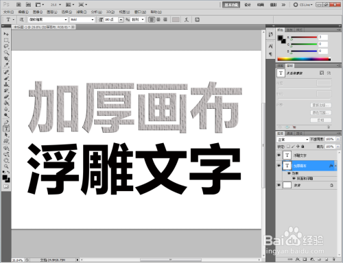 点击【文字东西】按图示设置好文字各参数后,完当作“加厚画布浮雕”和“文字”文字建造;
