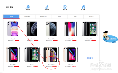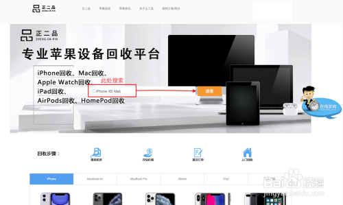 在正二品官网首页选择iPhone,下面会呈现每一条目型号的iPhone机型,找到iPhone XS Max这条目型号,或者首页直接搜刮iPhone XS Max点击进去。