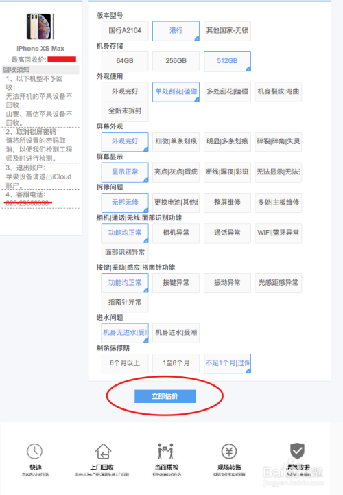 点击iPhone XS Max进去之后,按照iPhone根基设置装备摆设和选择完所有的评估选项当即估价收受接管价钱就评估出来了。