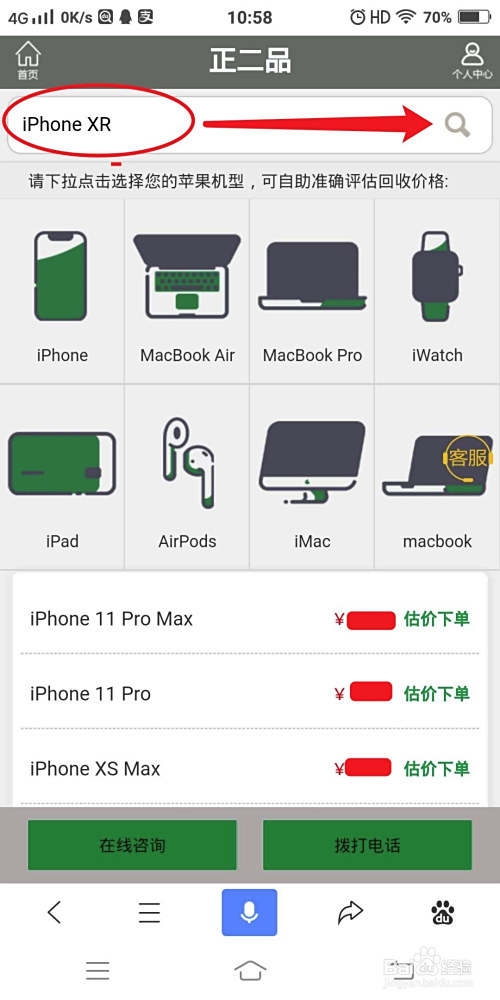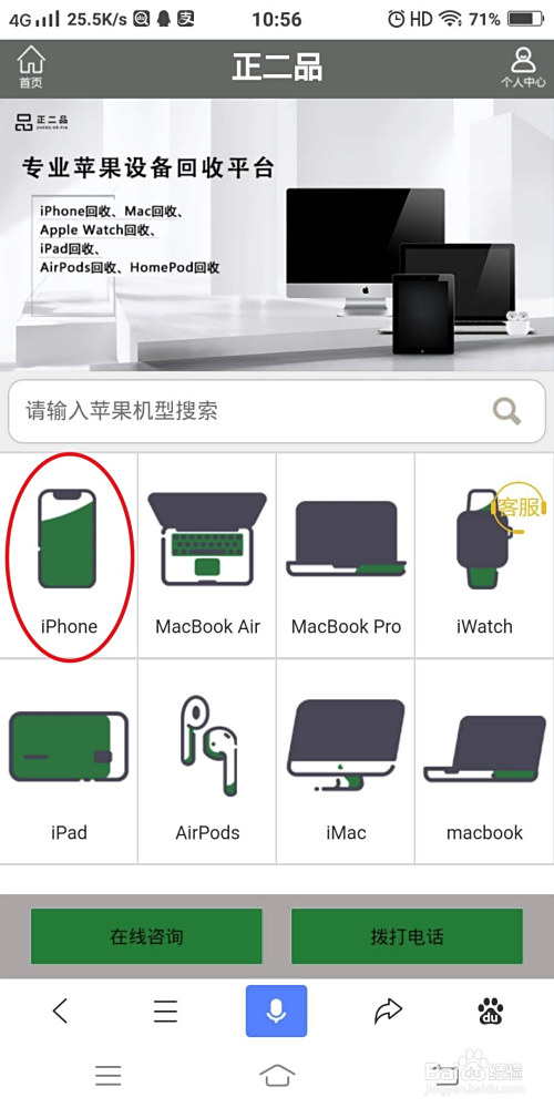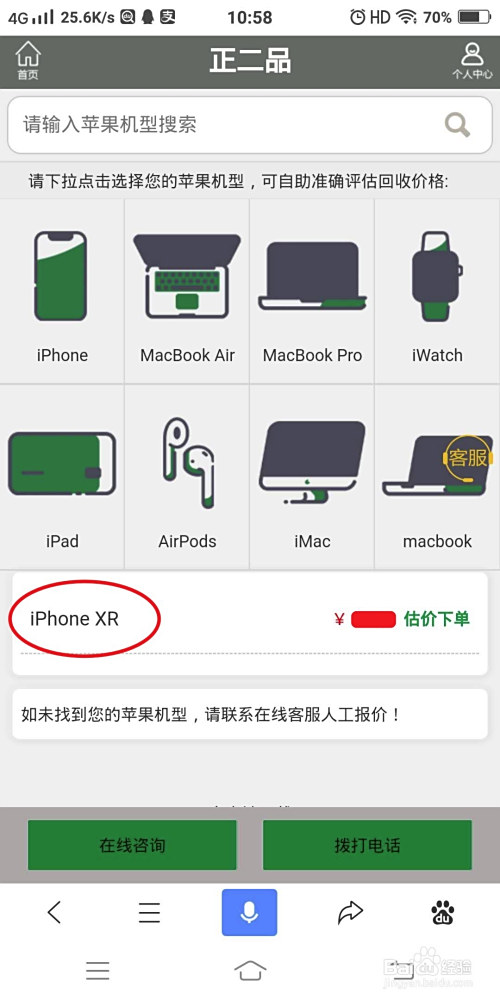 在正二品官网首页选择iPhone,下面会呈现每一条目型号的iPhone机型,找到iPhone XR这条目型号,或者首页直接搜刮iPhone XR点击进去。