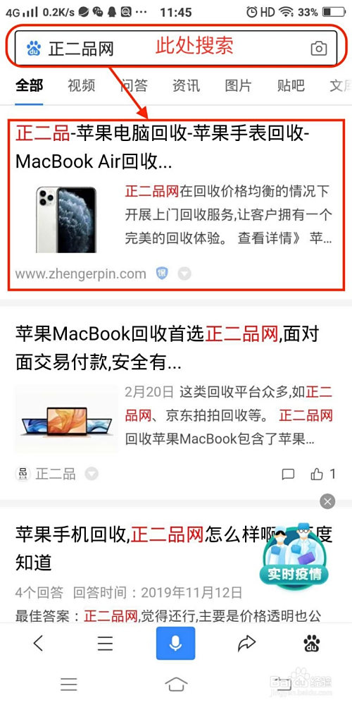 起首用手机打开百度浏览器搜刮正二品网,进入正二品的官网首页。