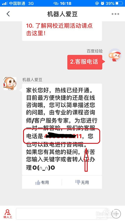 第五步:点击后就会呈现学而思网校的客服德律风了,如下图所示。