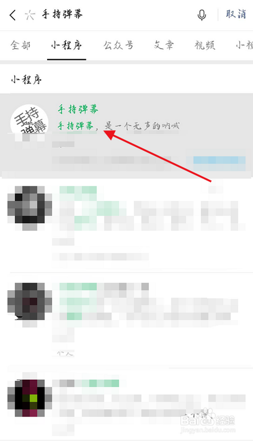 打开微信,直接搜刮手持弹幕,进入小程序。