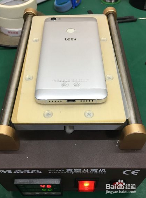 因为这条目手机是全贴合手机、外部没有一颗螺丝,所以先从屏幕起头拆,屏幕是用框胶粘在框上的,所以第一步加热、软化框胶。