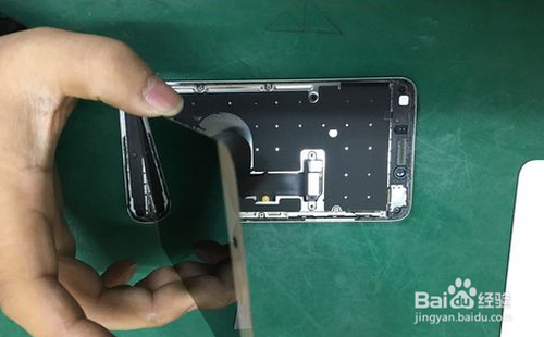 把一圈框胶全数划开后、小心的抬起屏幕、拧下固定屏幕排线的螺丝,扣起排线扣、取下屏幕。