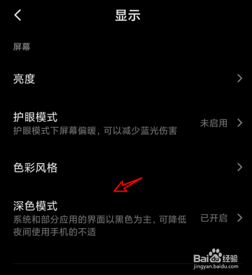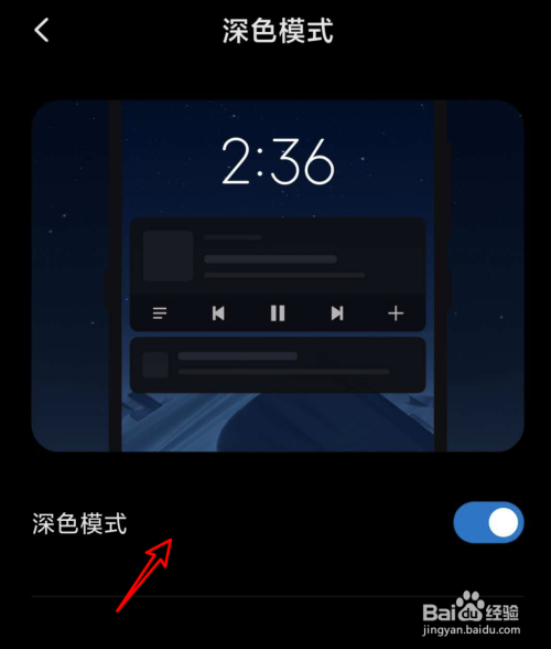 进入后点击深色模式开关,将其封闭。