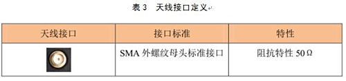 设备无线端采用尺度的SMA天线接口,接口申明如表3所示。