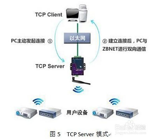 TCP Server下,设备不会本家儿动与其它设备毗连。它始终期待客户端的毗连,在与客户端成立毗连后即可进行双标的目的通信。如图5所示。