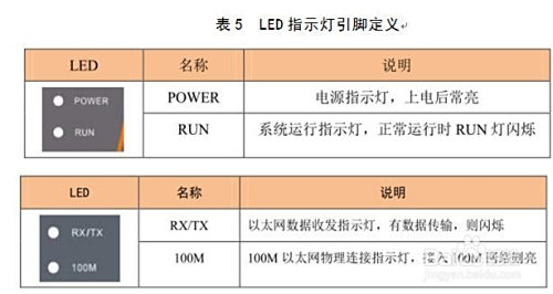 ZBNET系列产物共带4个LED指示灯,系统运行状况如表5所示。