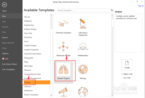 1、打开Edraw Max,在科学画中双击人体器官;