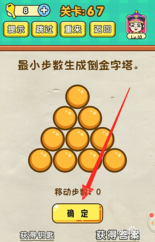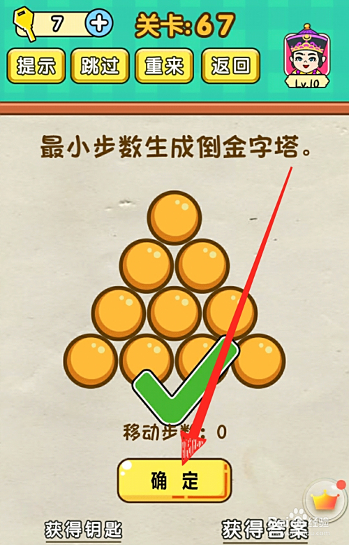 5.最后成果如下图所示,移动步数为0点击确定即可过关。