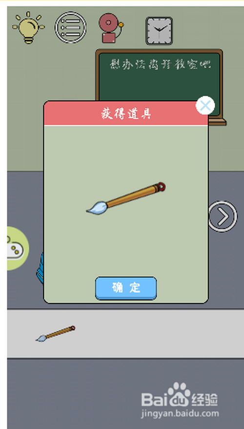 起首我们拿起桌上的毛笔,随后点击一下箭头到右侧。