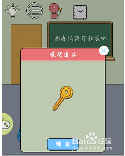 在场景中点一下讲台上的书,书就可以往旁边挪一下,即可看到钥匙。